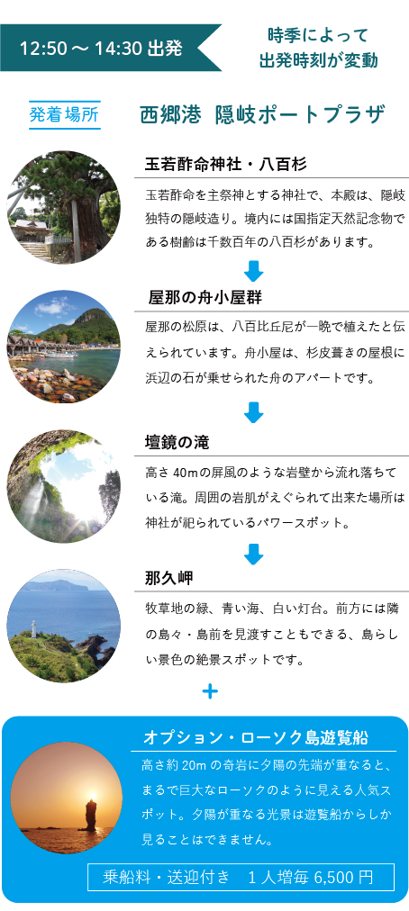 ※ツアー出発時間が季節によって異なります。(ローソク島遊覧船に接続するため)