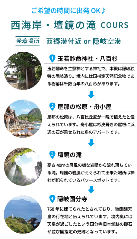 ■出発場所:宿泊施設・隠岐世界ジオパーク空港・隠岐ポートプラザ前など