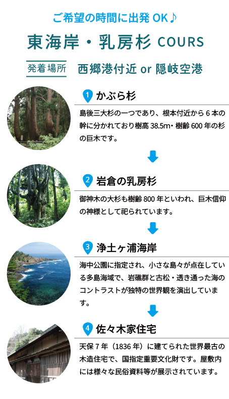■出発場所:宿泊施設・隠岐世界ジオパーク空港・隠岐ポートプラザ前など