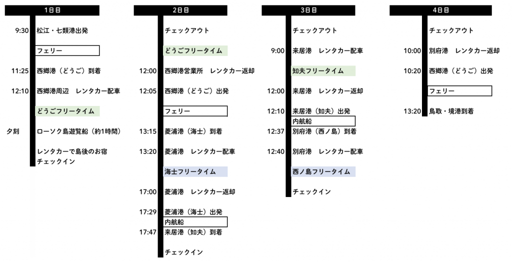 ●知夫 3時間 ●西ノ島 24時間 ●どうご 24時間 ●海士 4時間 ●免責補償料(安心パック)