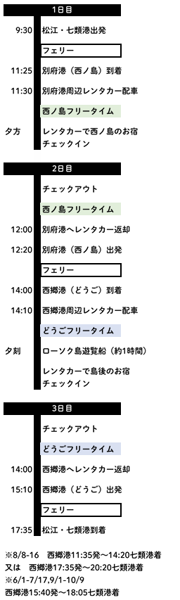 ※6/1-7/17,9/1-10/9 西郷港15:40発~18:05七類港着
