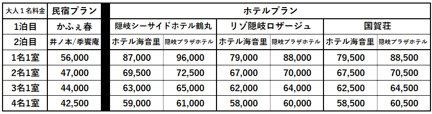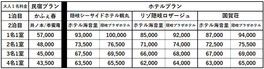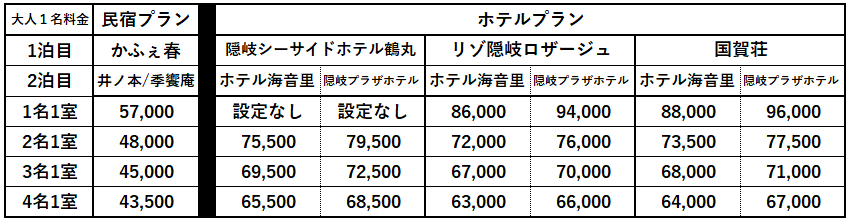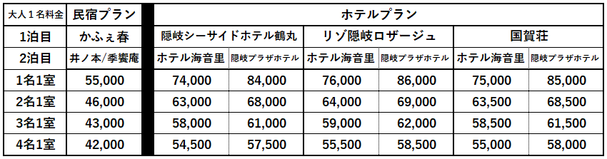 ●2泊4食付(西ノ島 又1泊、どうご1泊)