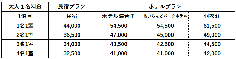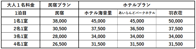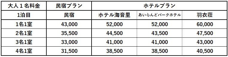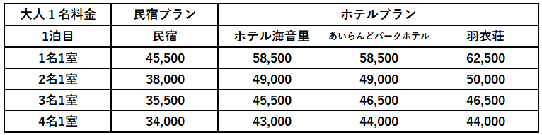 ▶ 出発日、参加人数によってプラン料金が異なります。