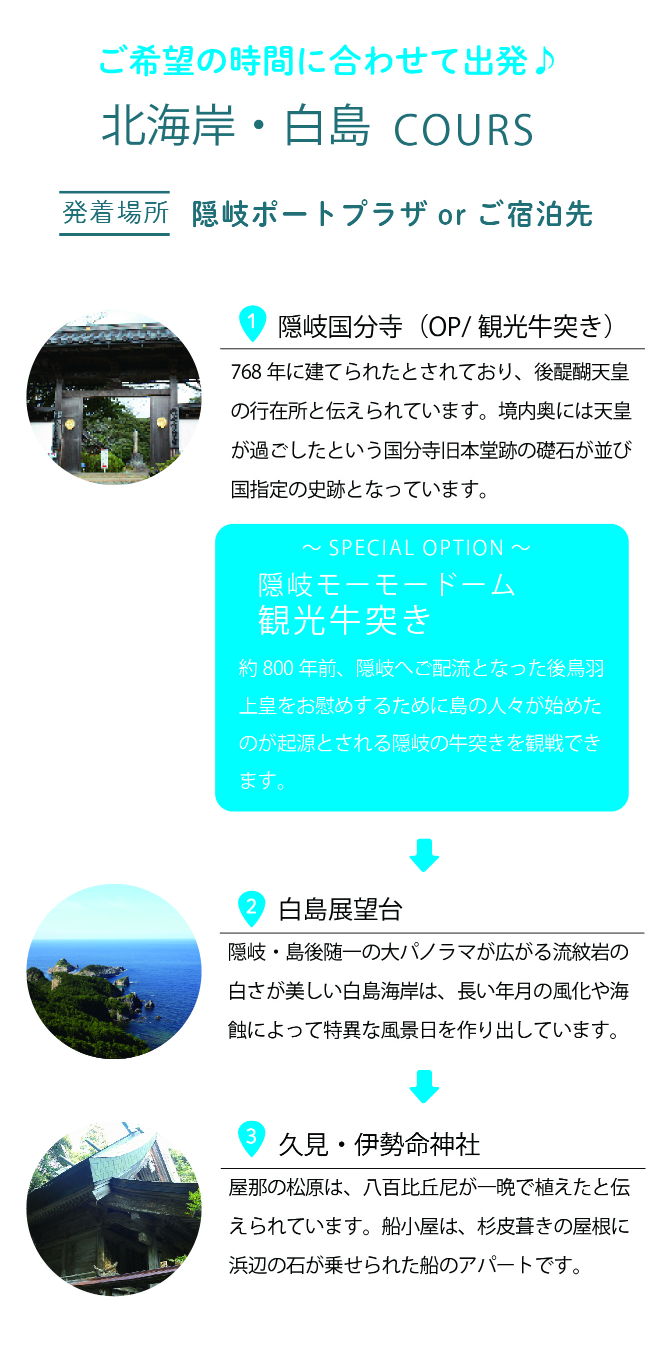 ■出発場所:宿泊施設・隠岐世界ジオパーク空港・隠岐ポートプラザ前など