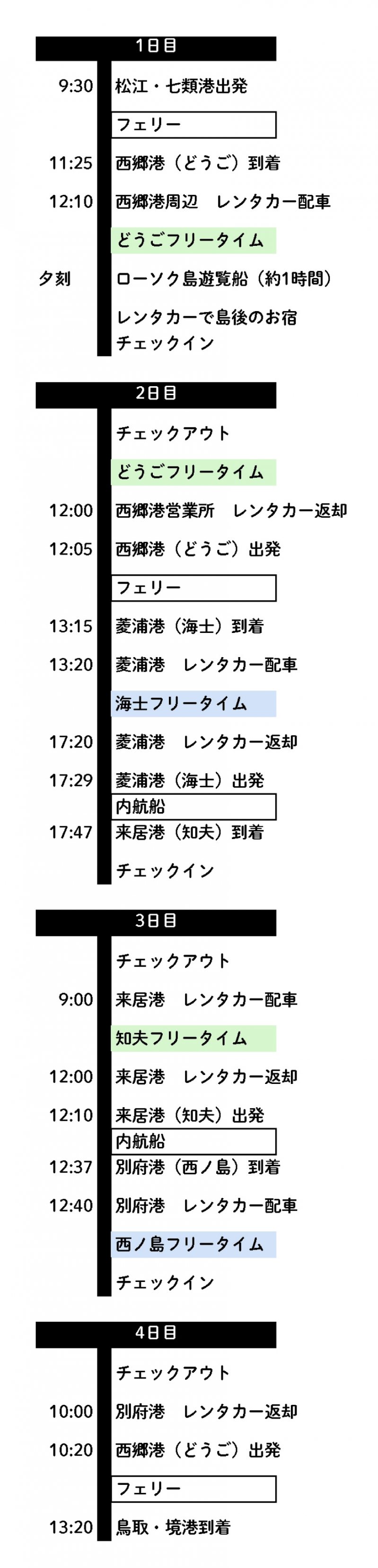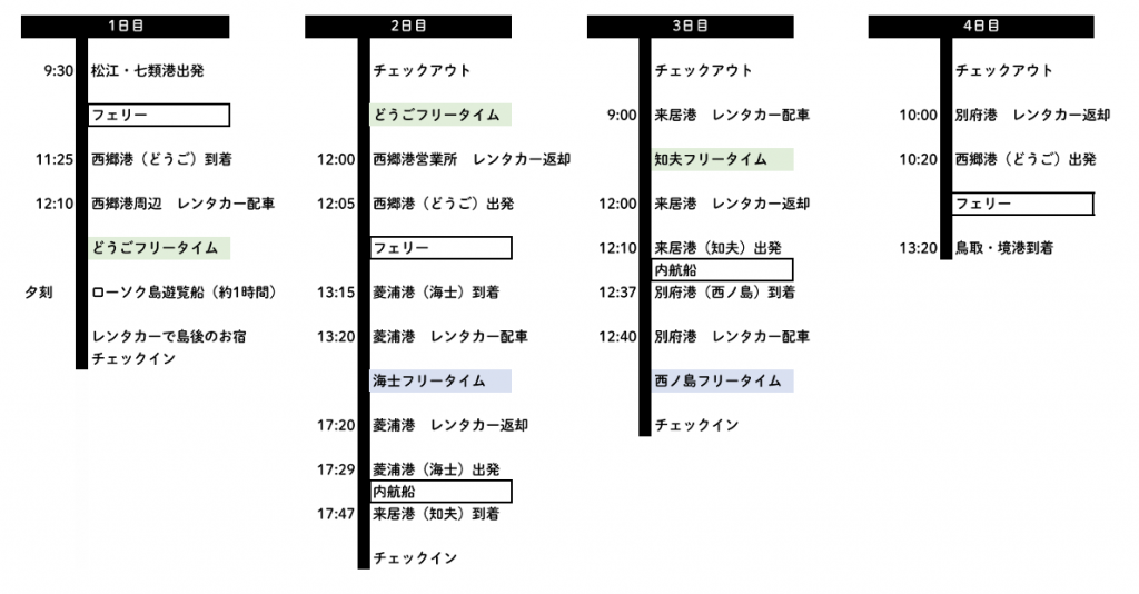 ●知夫 3時間 ●西ノ島 24時間 ●どうご 24時間 ●海士 4時間 ●免責補償料(安心パック)