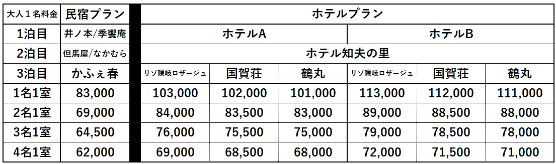 ▶ 出発日、参加人数によってプラン料金が異なります。
