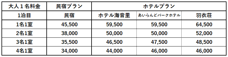 ▶ 出発日、参加人数によってプラン料金が異なります。
